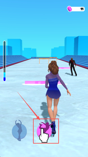 3、操控角色滑行:在简约场景中控制角色滑冰,灵活调整方向躲避障碍,同时展现滑冰技巧,推进关卡进度。