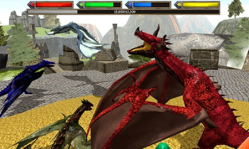 1、进入游戏后选择初始巨龙种类,通过虚拟摇杆控制巨龙移动与飞行,点击攻击按钮释放基础吐息技能,熟悉巨龙的基础操作方式。