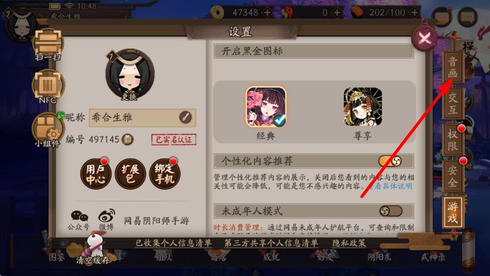 1、点击阴阳师游戏主界面左上角的头像,进入设置界面。