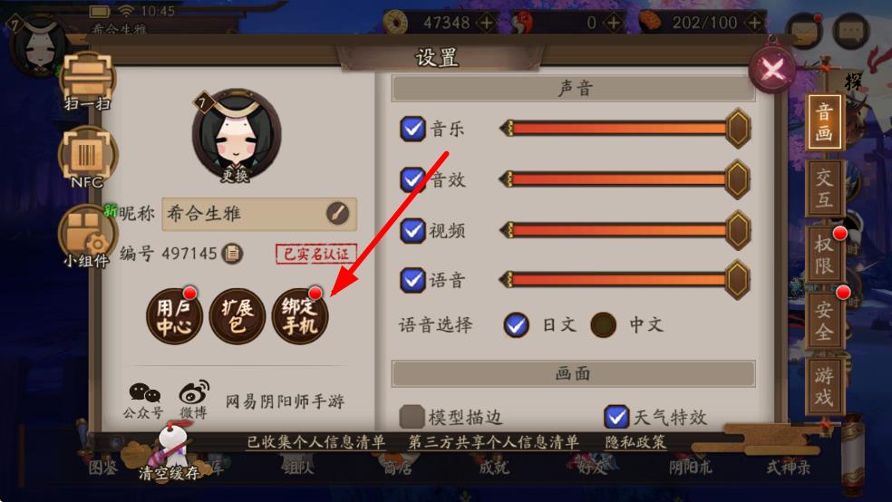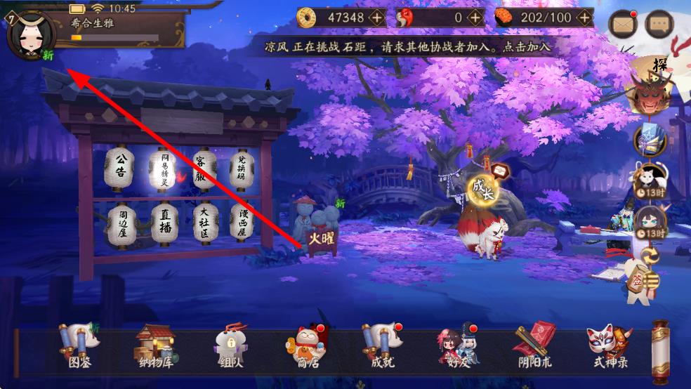 1、点击阴阳师游戏主界面左上角的头像,进入设置界面。