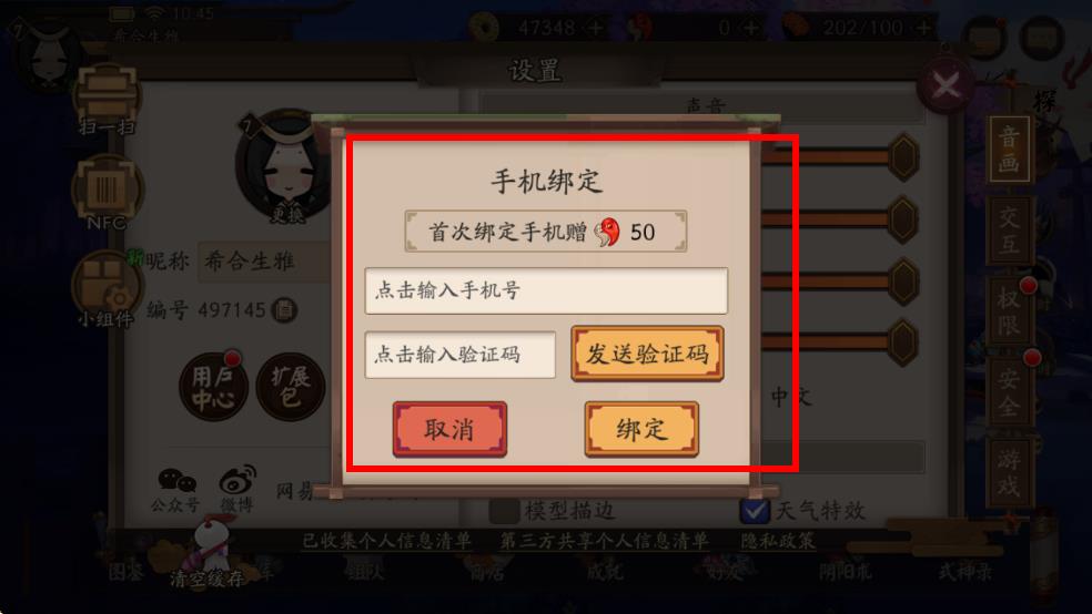 3、在弹出的手机绑定界面,输入手机号码,点击发送验证码 ,将接收到的验证码填入对应位置,最后点击绑定完成手机号码绑定。