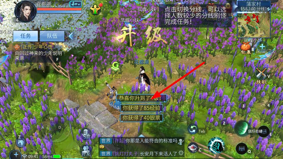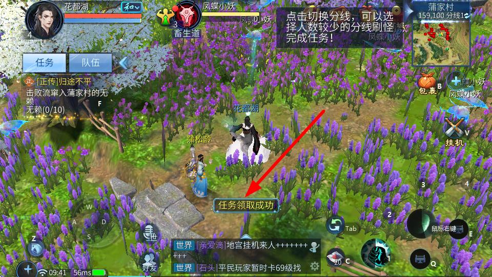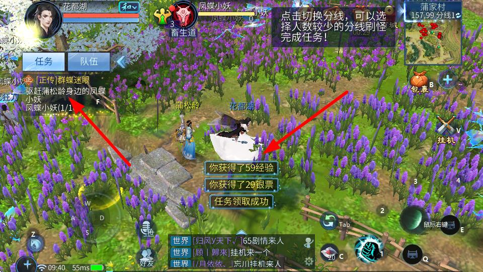 2、领取任务后,迅速前往任务地点,攻击并击败任务要求的怪物,比如驱赶指定数量的凤蝶小妖。