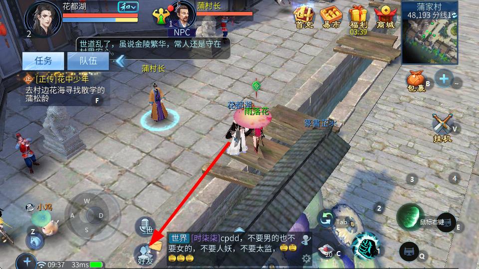 1、首先进入游戏场景后点击屏幕下方好友按钮,打开好友界面。