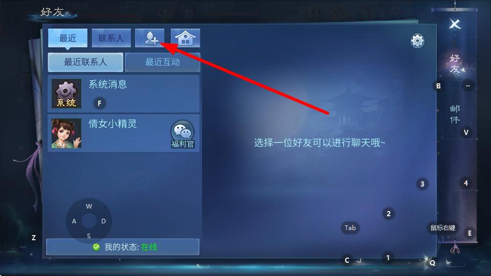 2、在好友界面中点击带有+号的添加好友按钮,进入添加好友操作页面。