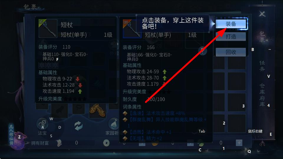 3、确认装备后点击装备按钮,即可穿上这件装备,提升角色实力。