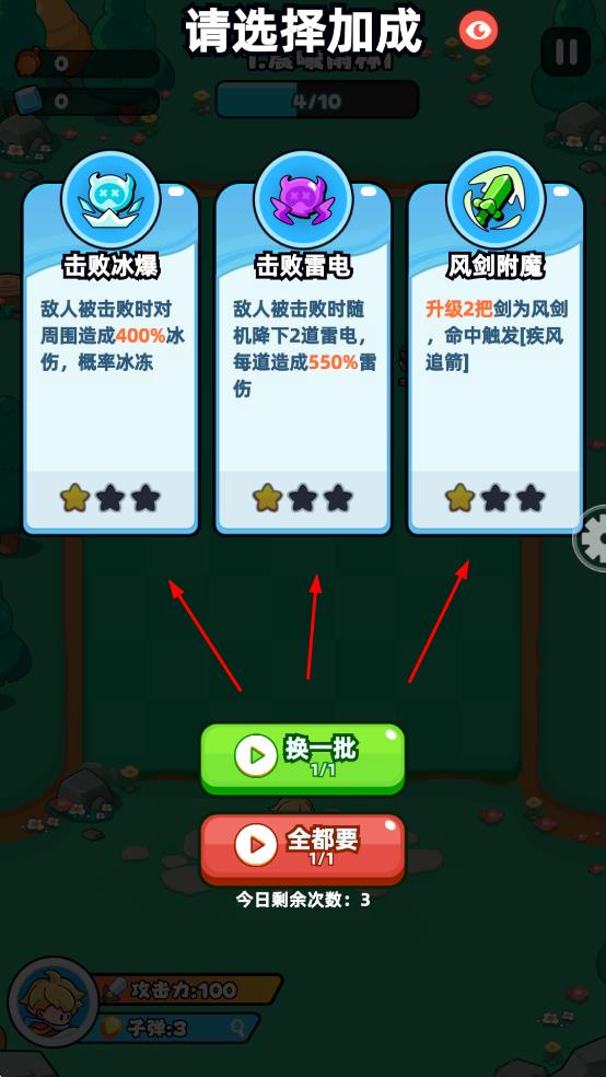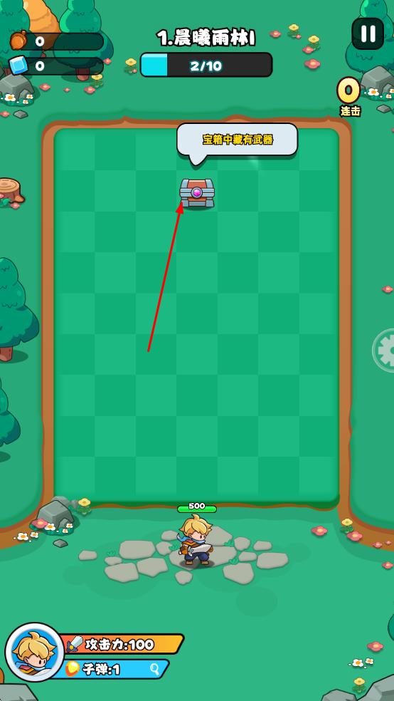 2、击破场景宝箱,获取武器;选择加成,强化战斗能力。