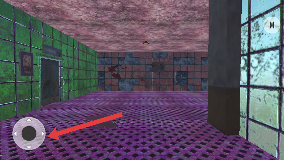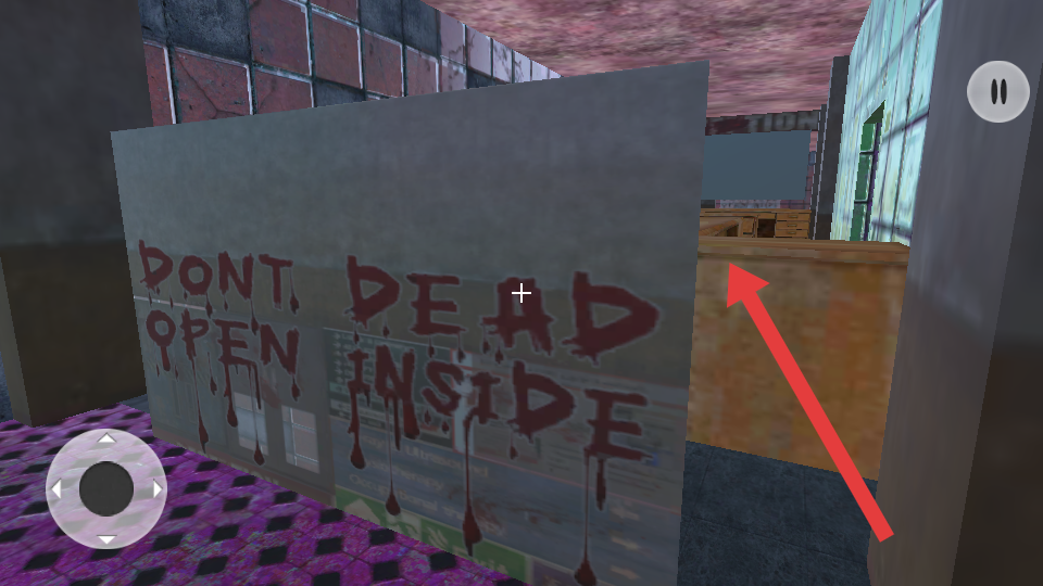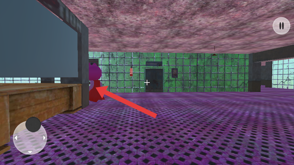 1、在紫色的大厅观察粉色角色动向,看到相关的标语,反向解读为OPEN INSIDE DON'T DEAD找隐藏门。