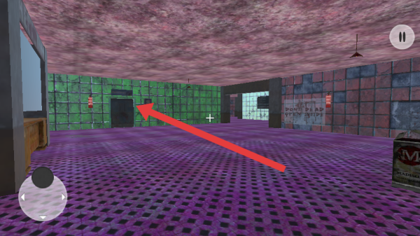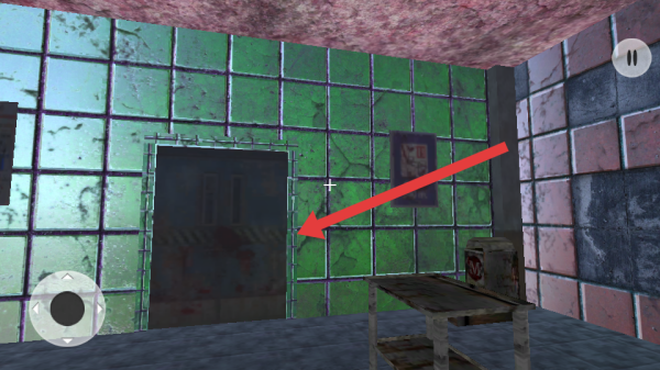 2、控制角色到了绿色的瓷砖房,用钥匙开铁门,解读海报的信息可能会对应密码,破解机关来开门。