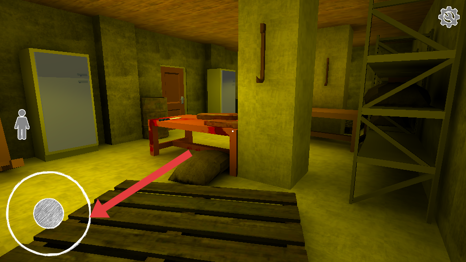 1、用右侧虚拟摇杆进行移动,搜索房间的道具比如桌子、架子可能藏物,点击手型按钮互动拾取。