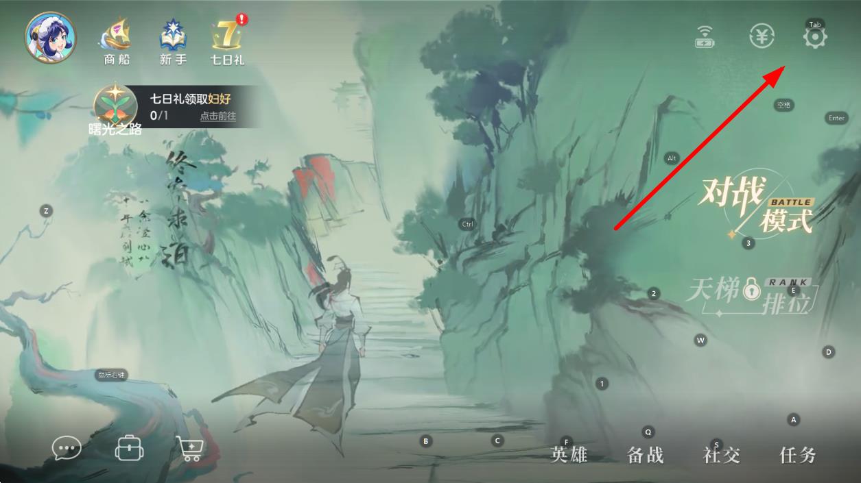 1、进入游戏主界面点击右上方设置图标,进入设置页面。