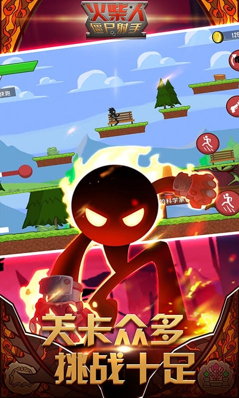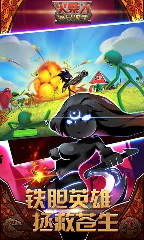 1、关卡射击对抗:操控火柴人在关卡中移动,通过滑动屏幕瞄准僵尸,点击屏幕完成射击,击败僵尸获取资源注意躲避,避免生命值耗尽。