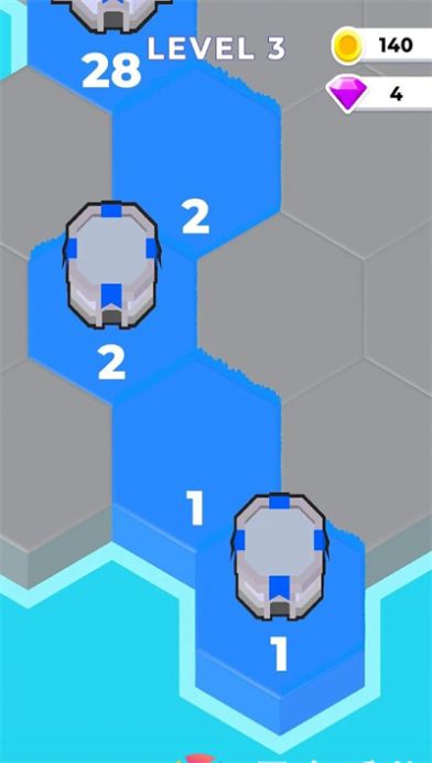3、指挥【5-数值】蓝色单位,进攻红方【3-单位】,通过六边形格子扩张,逐步掌控战局。