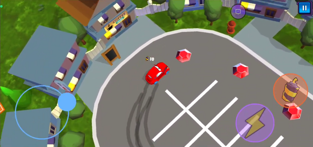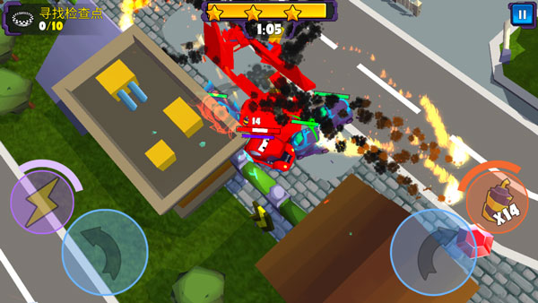 4.点击屏幕进入游戏,利用一切工具和走位消灭场上的汽车。