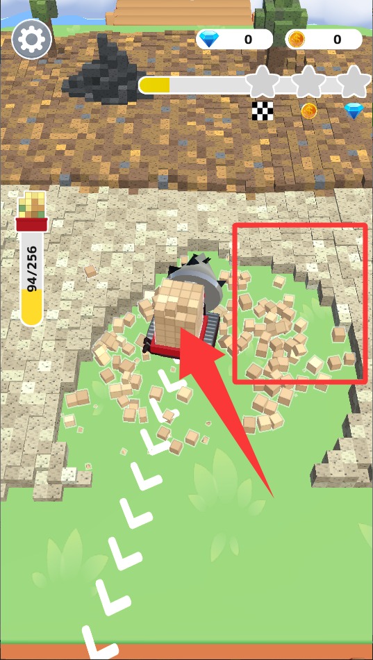 1.开局用手指在屏幕上划拉,控制钻探车前后左右移动,注意别撞到石头,不然会耽误时间。