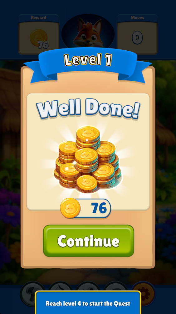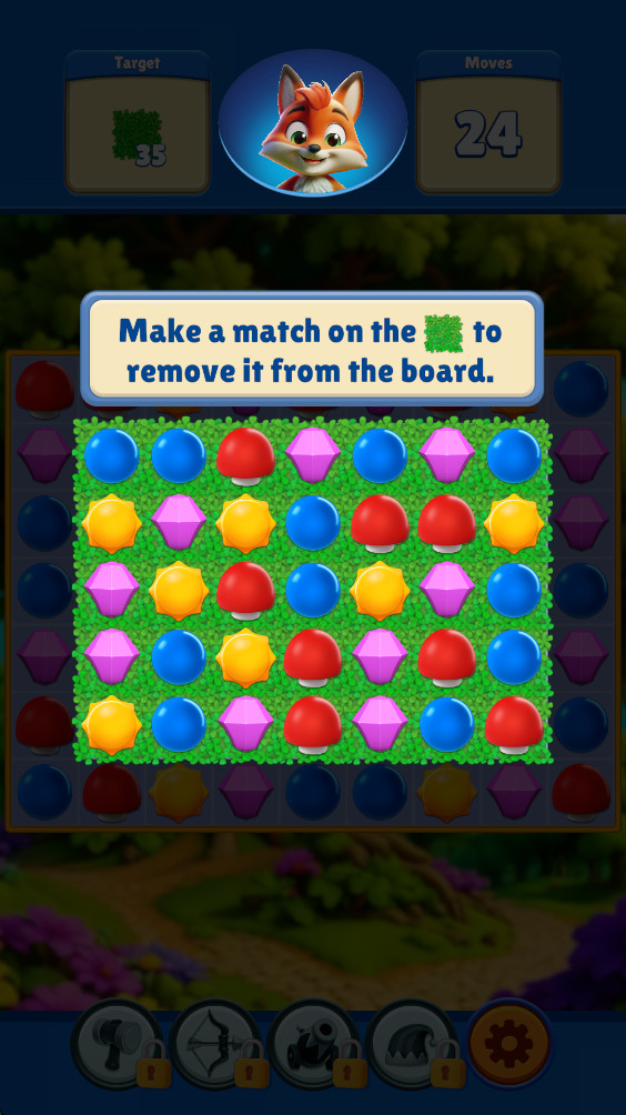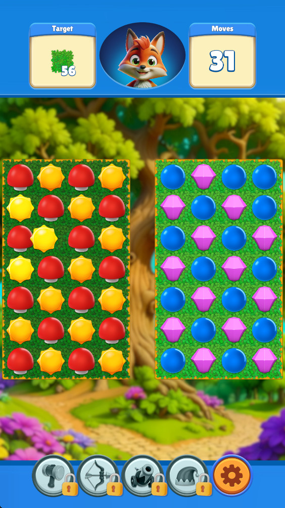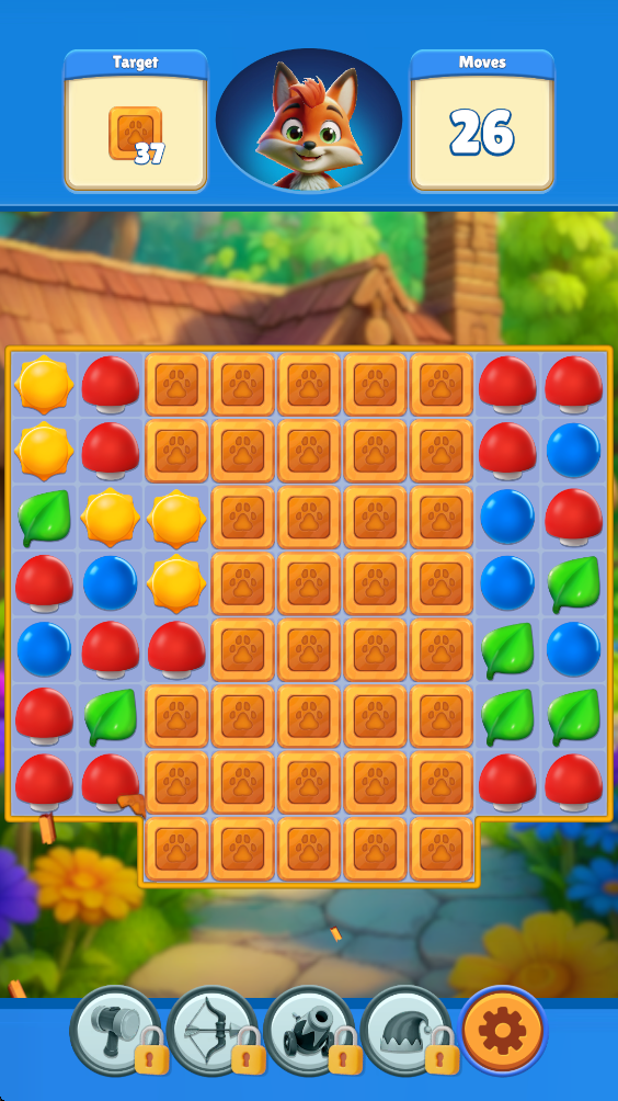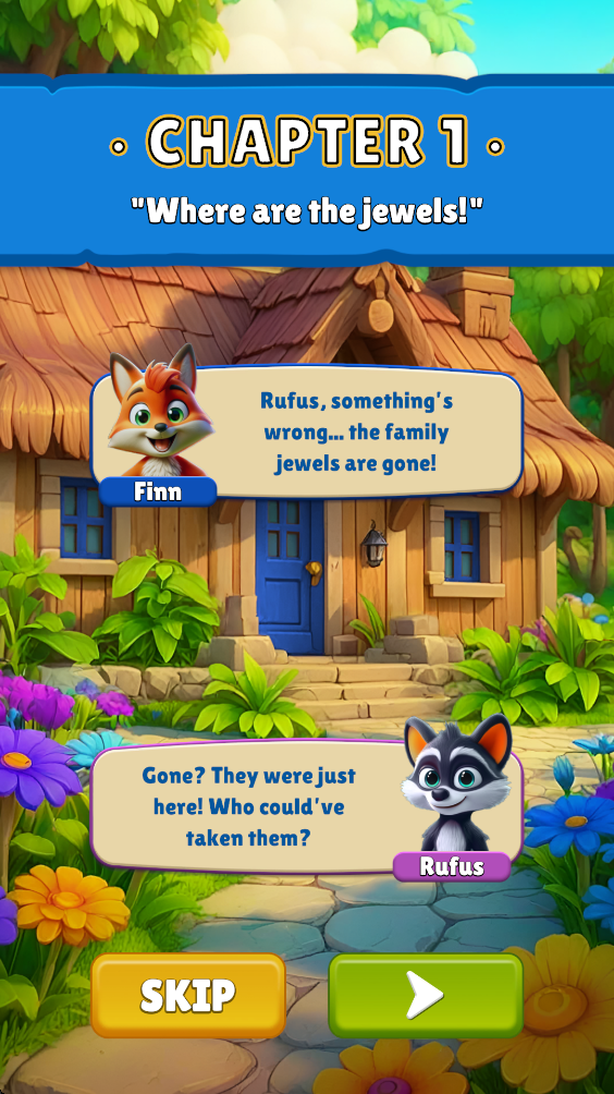 狐狸冲刺是一款融合了三消解谜元素与精彩冒险故事的休闲益智游戏,你将与聪明伶俐的芬恩和发明天才鲁弗斯一起,展开一场充满挑战与惊喜的冒险,目标是找回被盗走的家族宝藏,并揭开隐藏在宝藏背后的古老秘密。通过消除相同颜色的物品,解锁各种魔法道具和能力,你可以帮助芬恩和鲁弗斯解决一路上的难题,克服重重困难。
