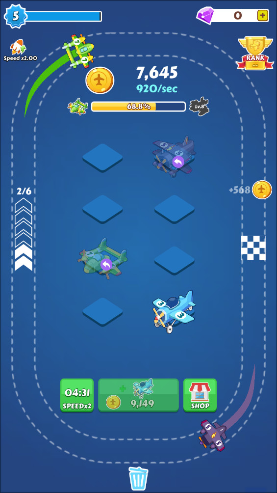 3.之后你就能解锁更高一级的飞机了,高级的飞机会在速度和收益上都更有优势。