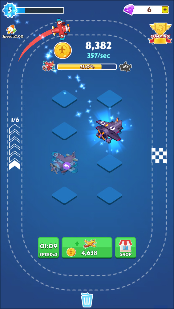 合并飞机是一款充满创意和策略的休闲模拟经营游戏,你将通过合并同等级的飞机,不断提升飞机的性能,最终打造出一支强大的飞行队伍。游戏设计简洁而直观,玩家只需拖动飞机进行合并,就能获得更高级的飞行器,提升航空队的效率与收益。游戏中的经营要素也充满挑战,你需要合理安排飞机的飞行路线与维修,确保每架飞机都能发挥最大效益。