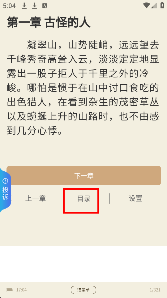 1、在书南小说APP中打开目标小说,进入详情阅读页面后点击目录按钮