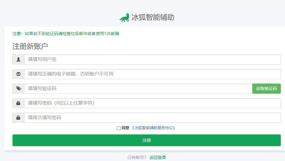 1、进入冰狐智能辅助平台首页https://www.aznfz.com/