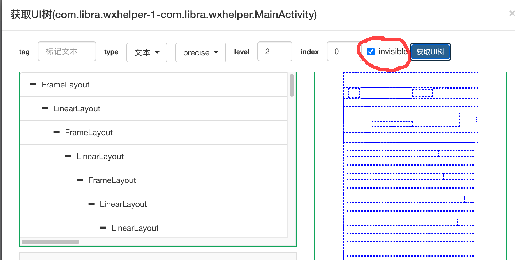有时候在界面上可以看到某个控件,但就是在UI树中搜索不到。有可能控件显示的并不是文本而是文字图片,可以从root往下查看找到该控件;也有可能是隐藏控件这时可以试试添加invisible试下