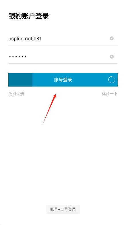 1、在本站下载安装银豹智能盘点app打开登录,小编这里使用的是测试账号