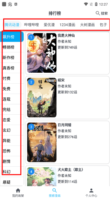 4.可以通过搜索框直接查找漫画名称或作者。