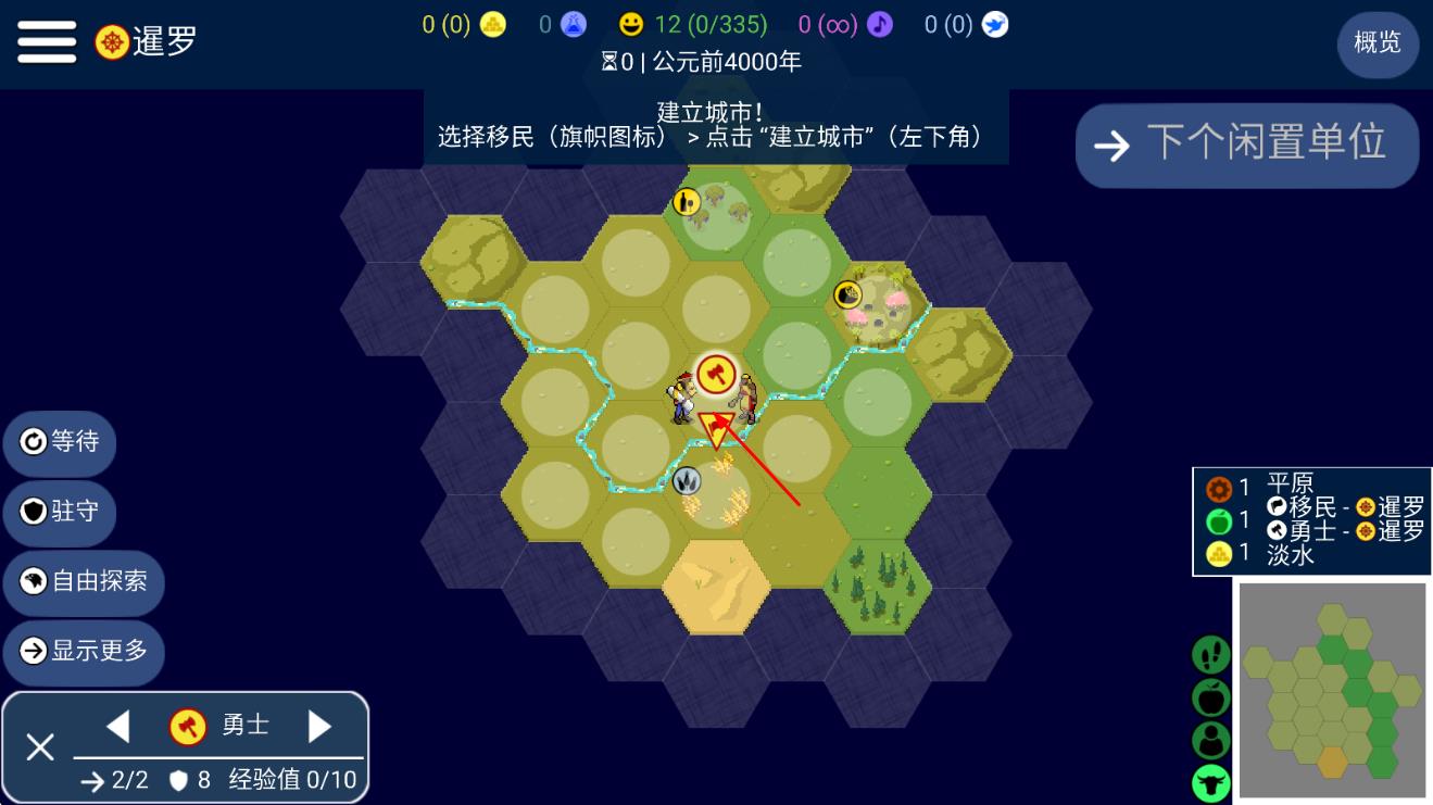 1、按指引选【移民-旗帜图标】,点击左下角【建立城市】,开启公元前4000年建城流程。