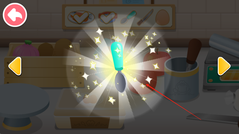 3、当工具发出光芒,如勺子发光时,点击工具完成特定操作,按此流程完成美食制作任务。
