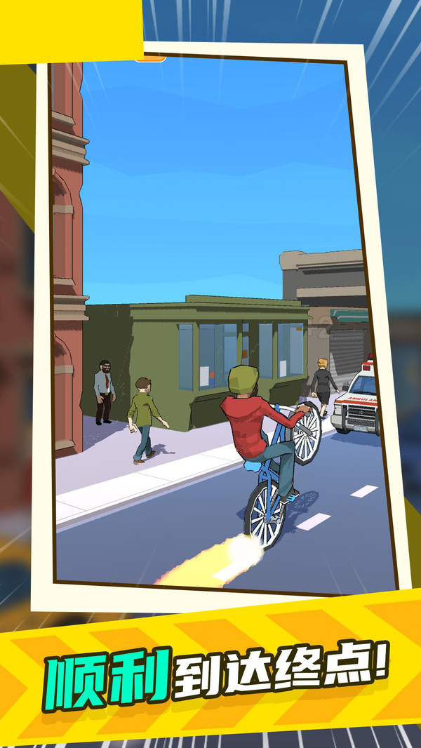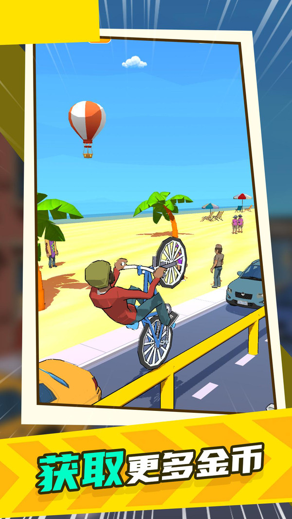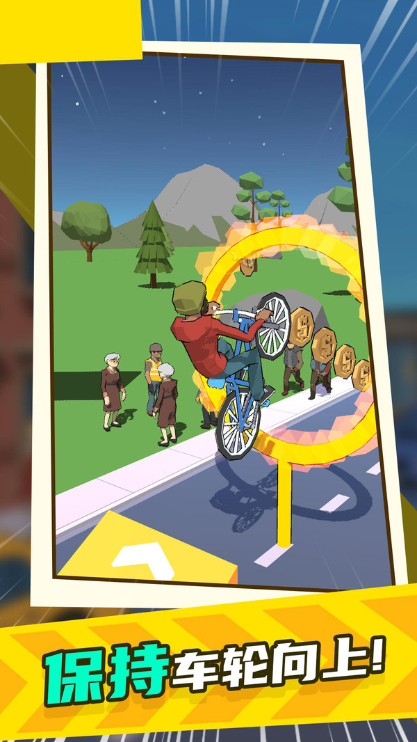 3、完成一系列杂技动作,超高难度动作完成,成功杂技表演,炫耀你的骑行技巧。