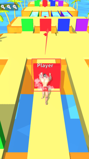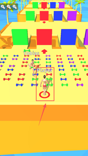 2、操控角色破障:在赛道中控制角色移动,凭借肌肉力量摧毁障碍物,遇到阻碍健身的敌人时,触发能力将其击败。