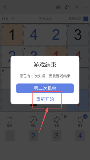4、若游戏结束,点击“重新开始”按钮再次尝试。