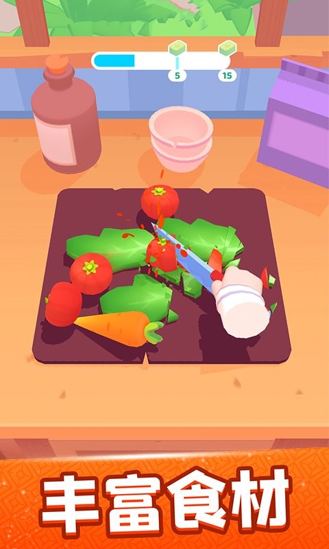 2、第一视角烹饪:以大厨第一视角呈现菜品制作细节,切菜的纹理、翻炒的火候、装盘的搭配清晰可见,让玩家仿佛置身真实厨房沉浸感十足。