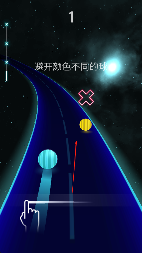 2、遇到颜色不同的球,像蓝色道路上的黄色球,及时避开,避免失误。