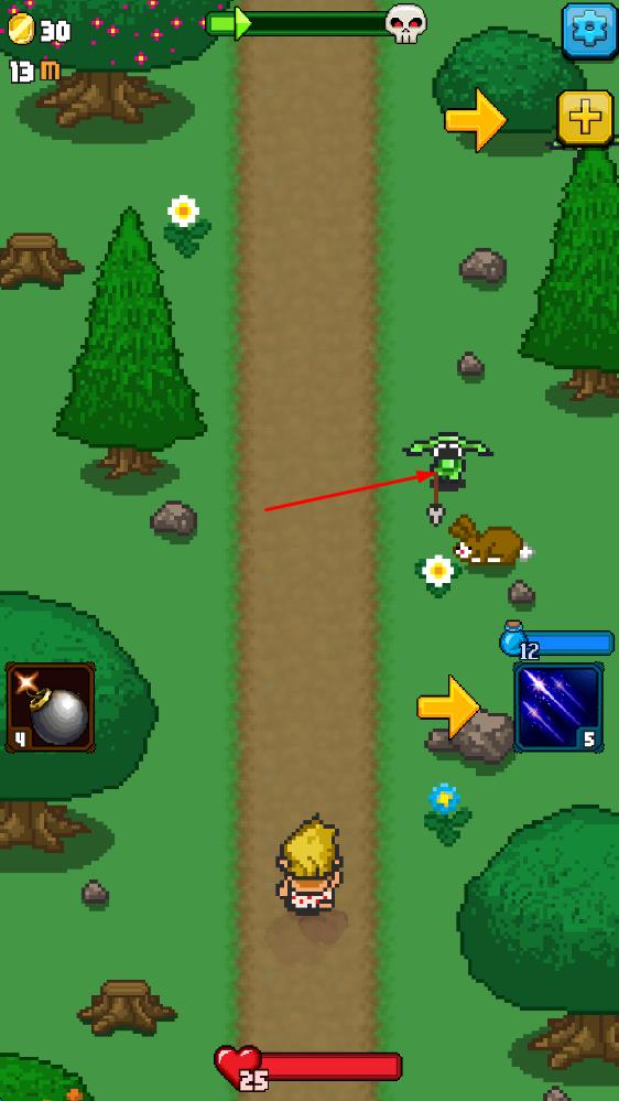 《探索冲刺》 Dash Quest 是一款像素风格的冲刺冒险动作手游,游戏中勇士在森林中勇往直前的冲刺,玩家需要控制他来打败妖怪并且进行防守,点击屏幕左侧会使得英雄发出护盾防守,点击右侧进行攻击,长按屏幕松手就是发射魔法球。