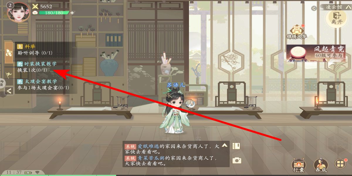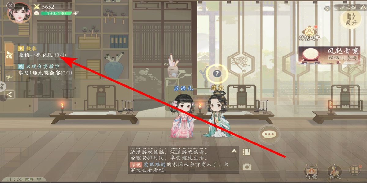 1、在任务栏接时装换装教学任务,清晰明确需更换一套衣服的目标,自动寻路功能会智能引导前往对应互动区域,开启换装流程。