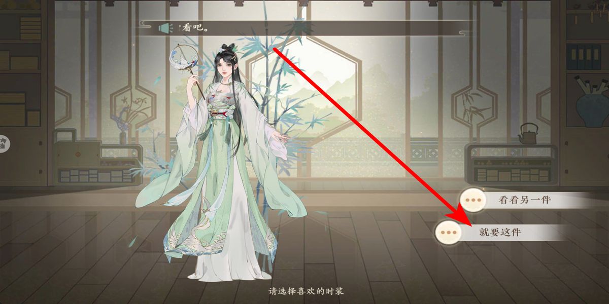 2、进入换装界面,浏览精美展示的国风造型时装,可以点击看看另一件切换款式,挑选心仪古韵服饰,感受不同造型的独特美感。