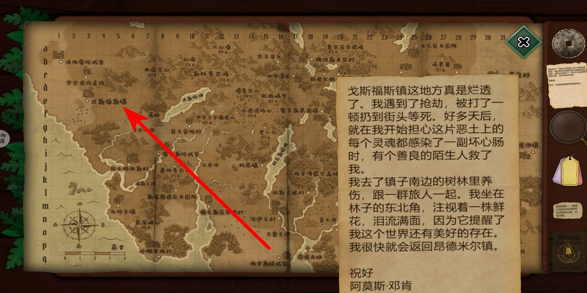 3、查看地图标注地点,前往对应区域探索,留意场景细节,收集新植物与线索,关联小镇传说,逐步揭开黑暗秘密。
