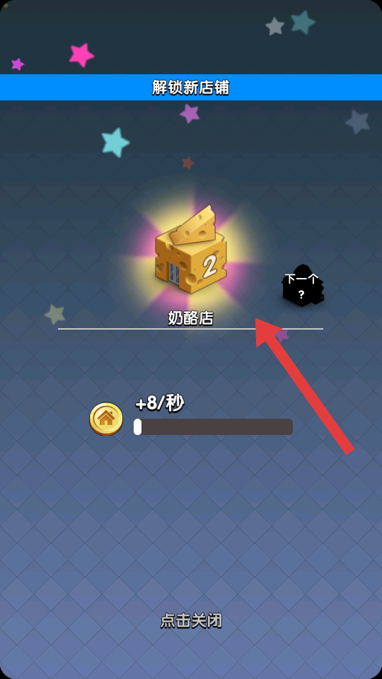 1、优先关注解锁新店铺提示,消耗对应资源金币、钻石等解锁,新店铺可增加每秒收益,加速金币积累。