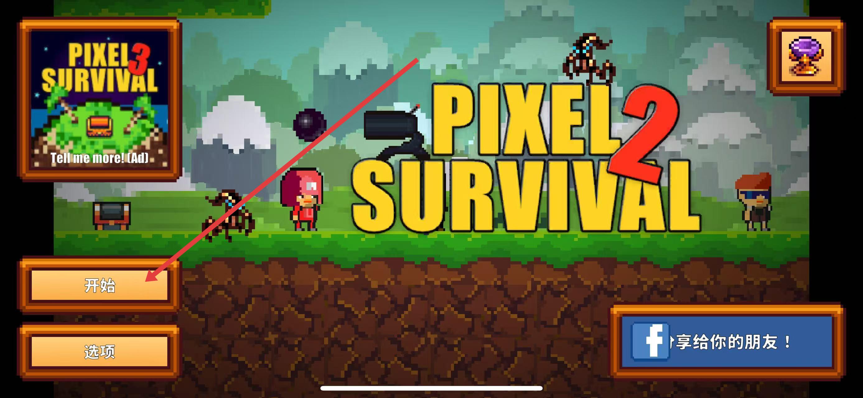 1、打开像素生存者2游戏,在主界面点击开始按钮,进入游戏模式选择界面。