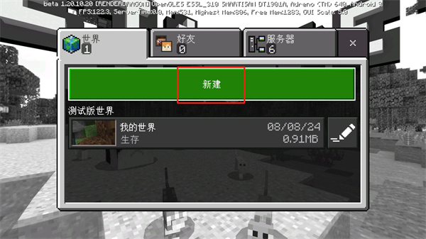 2、然后在选择世界的界面中,我们需要新建一个世界,点击【新建】创建世界;