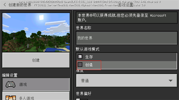 5、最后设定完成之后,就可以点击【创建】完成创建,等待加载完成就可以进入游戏。
