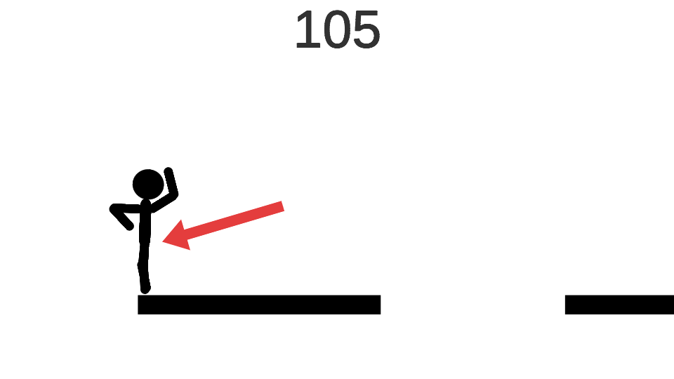 2、随关卡推进数字增大,障碍变复杂长缺口、多段地形,保持节奏,连续跳跃时注意间隔,利用火柴人动作。