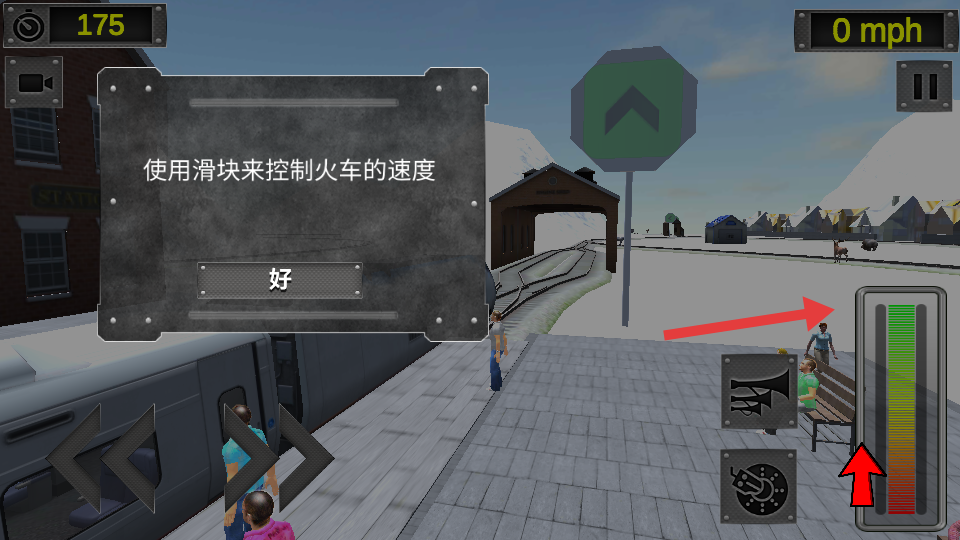 2、驾驶火车按照既定线路行驶,途中关注速度表与路况提示,平稳操控避免急加速或急减速,同时留意车站到站信息准备停靠。