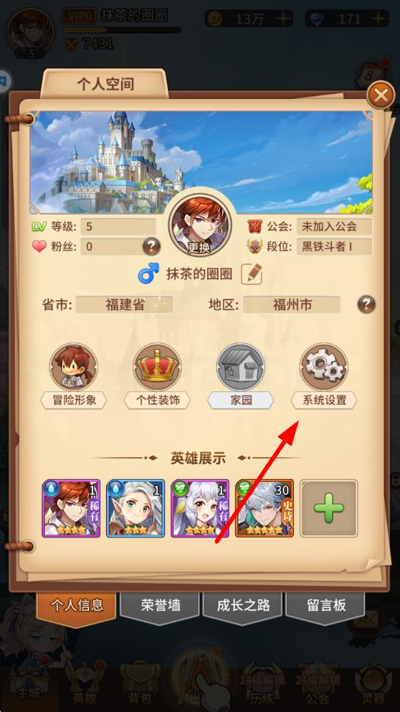 2、在个人空间界面中,找到并点击系统设置按钮,进入系统设置界面。