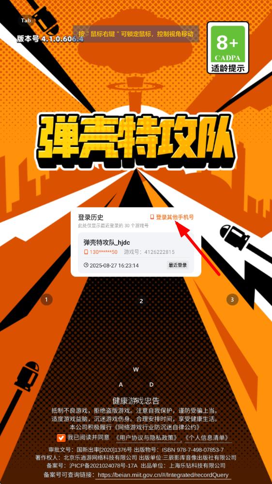 3、退出后会回到游戏登录界面,点击登录其他手机号选项,按照提示输入新的账号信息,即可完成换账号操作,登录新账号继续游戏。