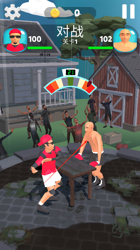 2、观察屏幕中间的彩色力度条,在合适时机点击屏幕,控制角色出拳,力度条颜色区域会影响出拳力度。