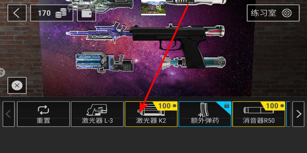 2、装配件时,在配件栏选定激光器K2等,花费金币100顺利装配,不同配件如激光器能为武器附加特殊攻击效果,有效提升战斗表现实力。