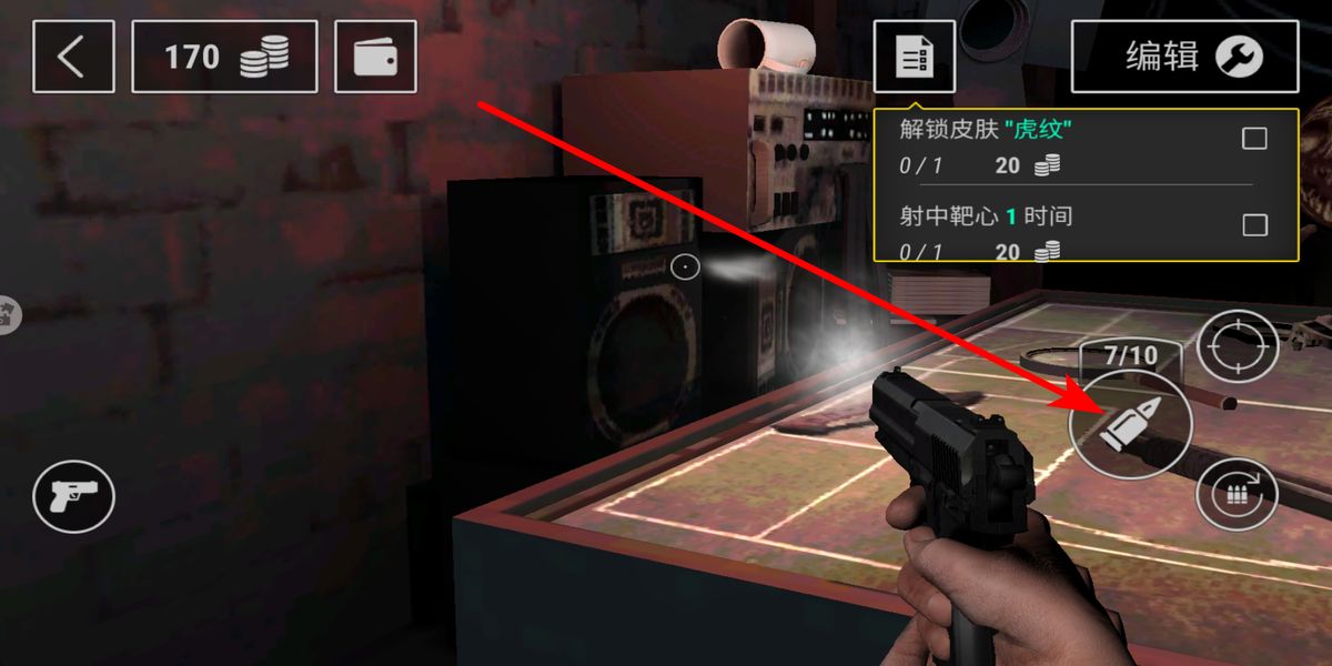 3、填弹操作中,在练习室等场景内,点击界面子弹图标,即可快速为当前手持武器补充弹药,切实保障战斗过程中弹药充足,稳定持续输出。
