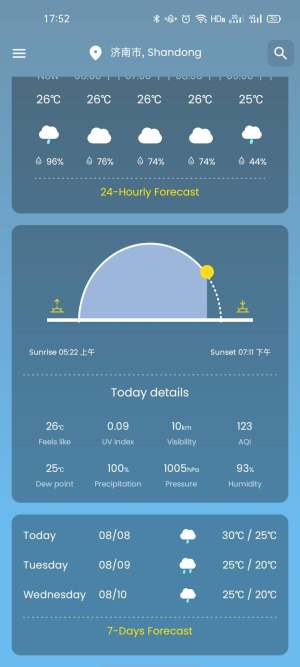 2、多维度预报:除了提供当天的天气情况外,轻柚天气还提供未来几天的天气预报,用户可以根据预报信息做好出行和活动安排。