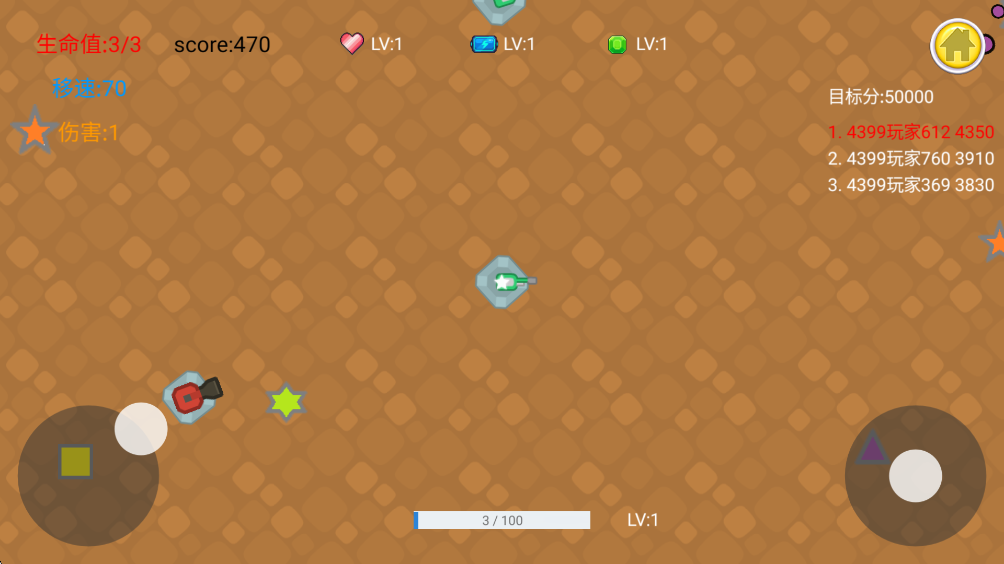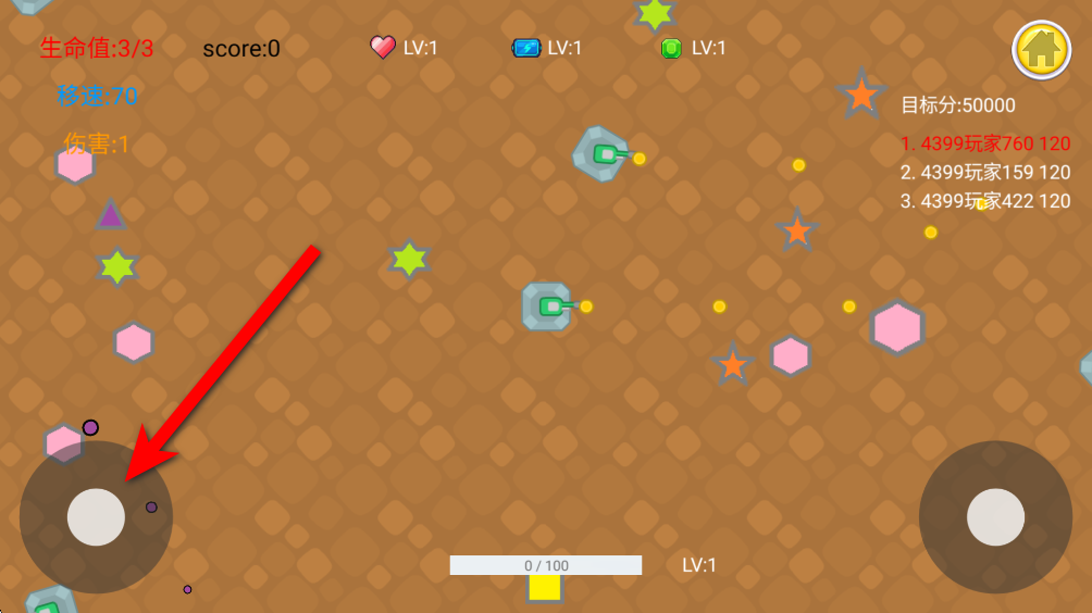 4.右下角移动摇杆可以转动你的炮塔朝向。